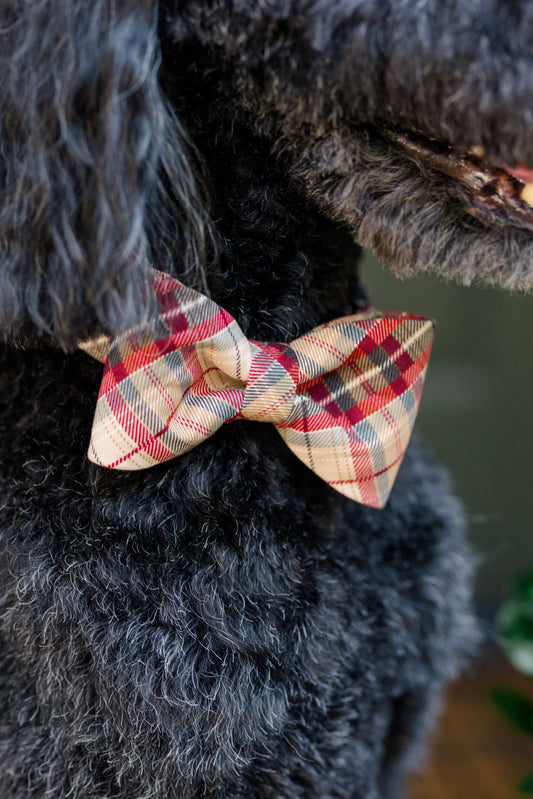 Cabernet Plaid Bow Tie Dog Collar