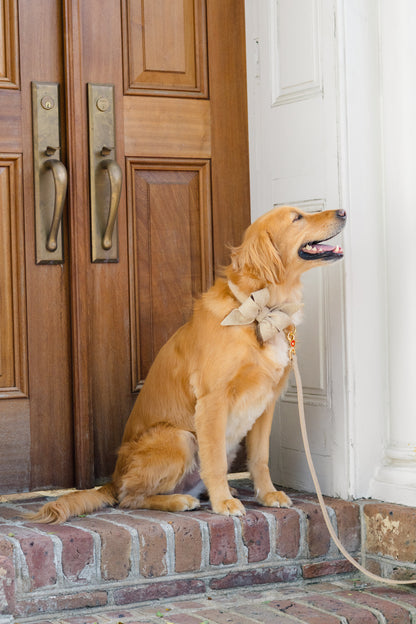 Elevate your dog's style with the Golden Glitter Belle Bow Dog Collar! This dazzling collar features a touch of gold glitter that adds a pop of glamour to any outfit. Your furry companion will turn heads and feel like a true fashionista. Perfect for special occasions or everyday wear.